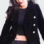 Елегантно сако с вечен крой и двоен бутон, което подчертава силуета. Неговата структура придава професионален и изискан характер, а може да се носи лесно в ежедневни или вечерни поводи. Минималистичният дизайн прави основен елемент за всеки гардероб.