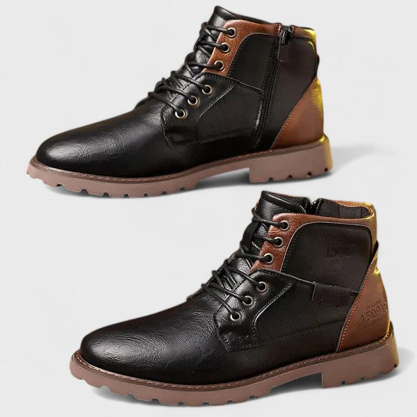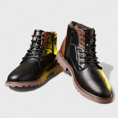 Високите обувки Jethro с връзки от издръжлива кожа са създадени за сега, които изпитват здравина и комфорт с всяка стъпка. Те са идеални както за градските улици, така и за неравен терен. Благодарение на своята здрава кожна конструкция и подсилени подметки, тези обувки осигуряват дълга употреба, изключителна поддръжка и класически стил, който се отличава от обикновените обувки.