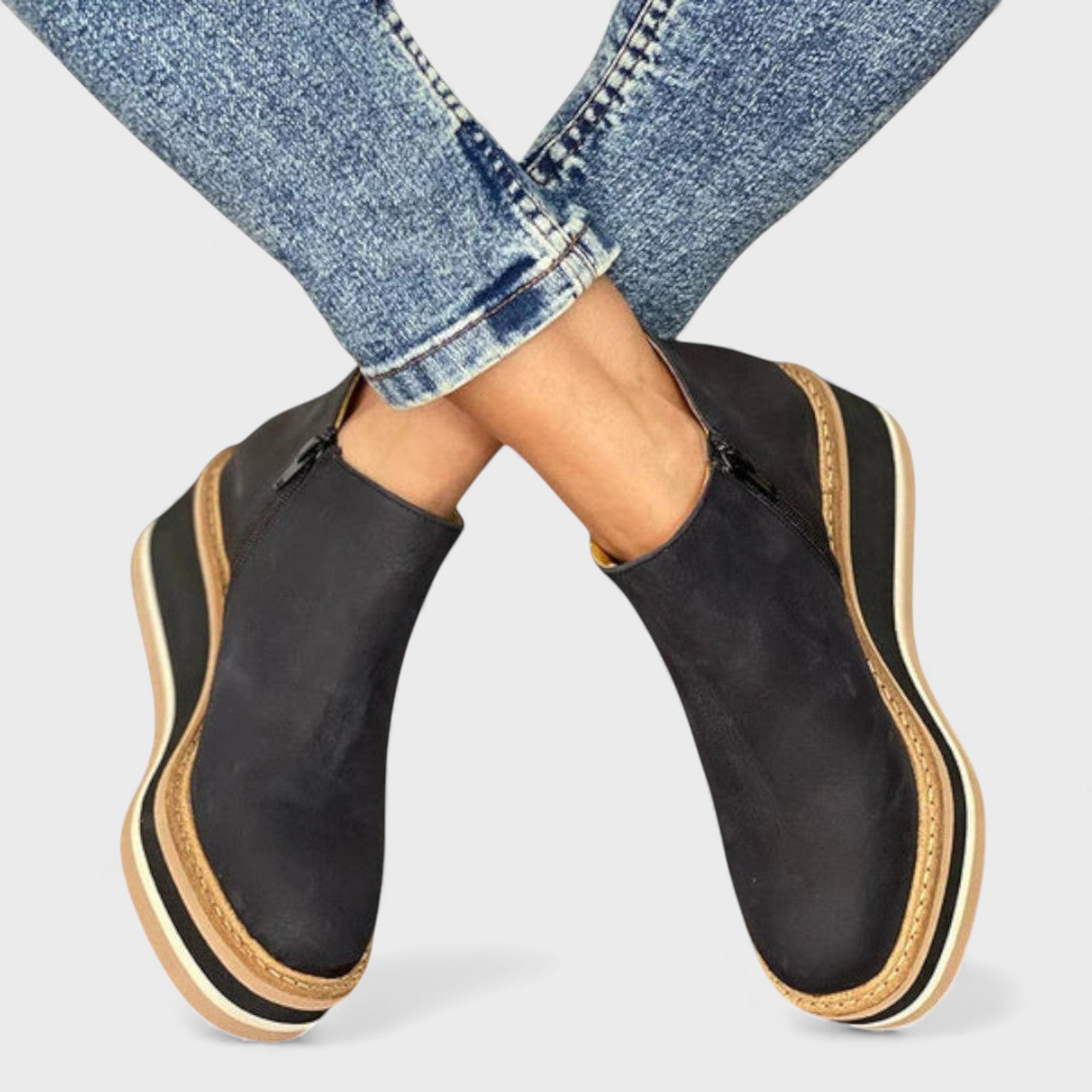 Запознайте се с Ивана – идеалното съчетание между модерен градски дизайн и функционалност. Тези боти на платформата са създадени, за да ви осигурят стабилност, топлина и сухота през хладните дни, без да правите компромис с визията си. С удобния си страничен цип и омекотена подметка, ще се превърнете във вашия любим избор за дълги ежедневни разходки.
