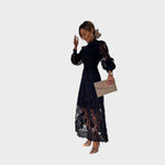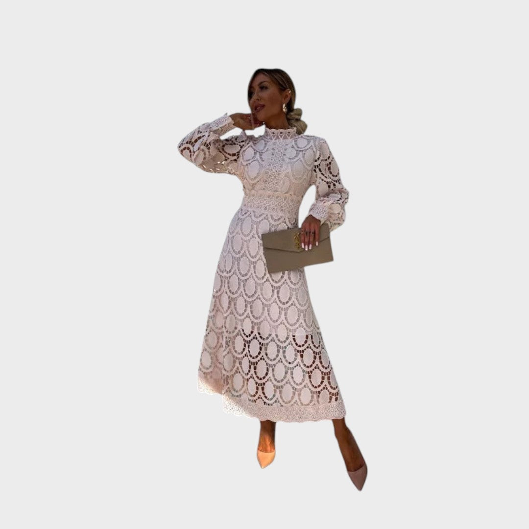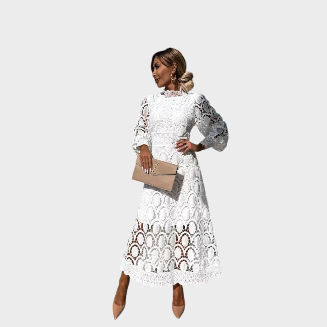 Даница - Чипкана рокля с обемни ръкави и висока яка