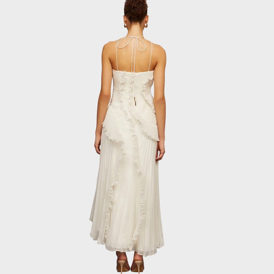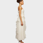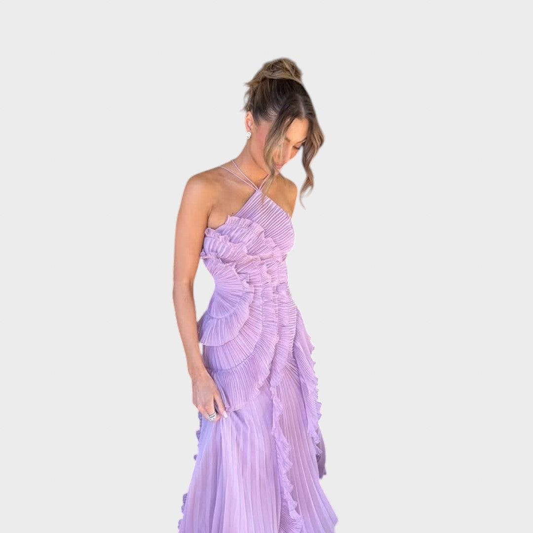 Роклята с волани носи игрив и лек вид, който завладява от първия поглед. Създадена е за моменти, в които искате да изглеждате нежно, елегантно и без усилие привлекателно.