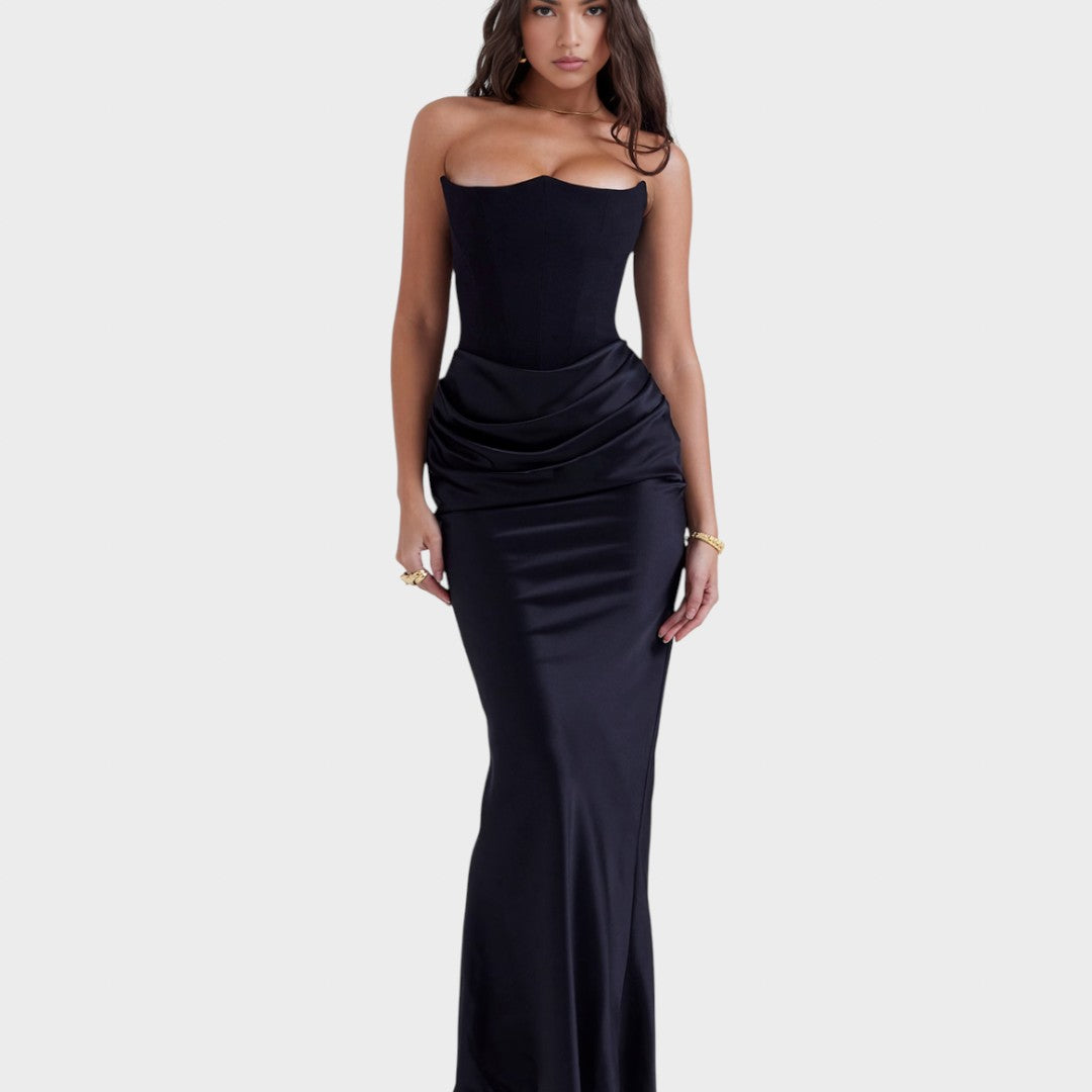 Класическата дълга рокля с чисти линии излъчва простота и вечна красота. Перфектна е за жени, които вярват, че по-малкото е повече.