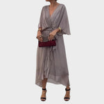 Тази елегантна дантелена рокля е перфектното съчетание на изисканост и женственост. С прозрачни ръкави и летяща кройка, тя предлага доза блясък, без да нарушава комфорта. Дълбокото V-образно деколте и детайлите в талията подчертават фигурата по нежно и изтънчено начин, правейки тази рокля идеален избор за вечерни излизания, тържества или оценени събития.