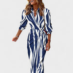 Риза-крой с елегантна яка и копчета, лека и податлива тъкан, която красиво пада, и флуидна силуета с изискан разрез – тази шарена дълга рокля е създадена за моментален ефект. Дискретно подчертава талията и осигурява свобода на движението, че така също добре функционира в дневни комбинации и вечерни поводи.