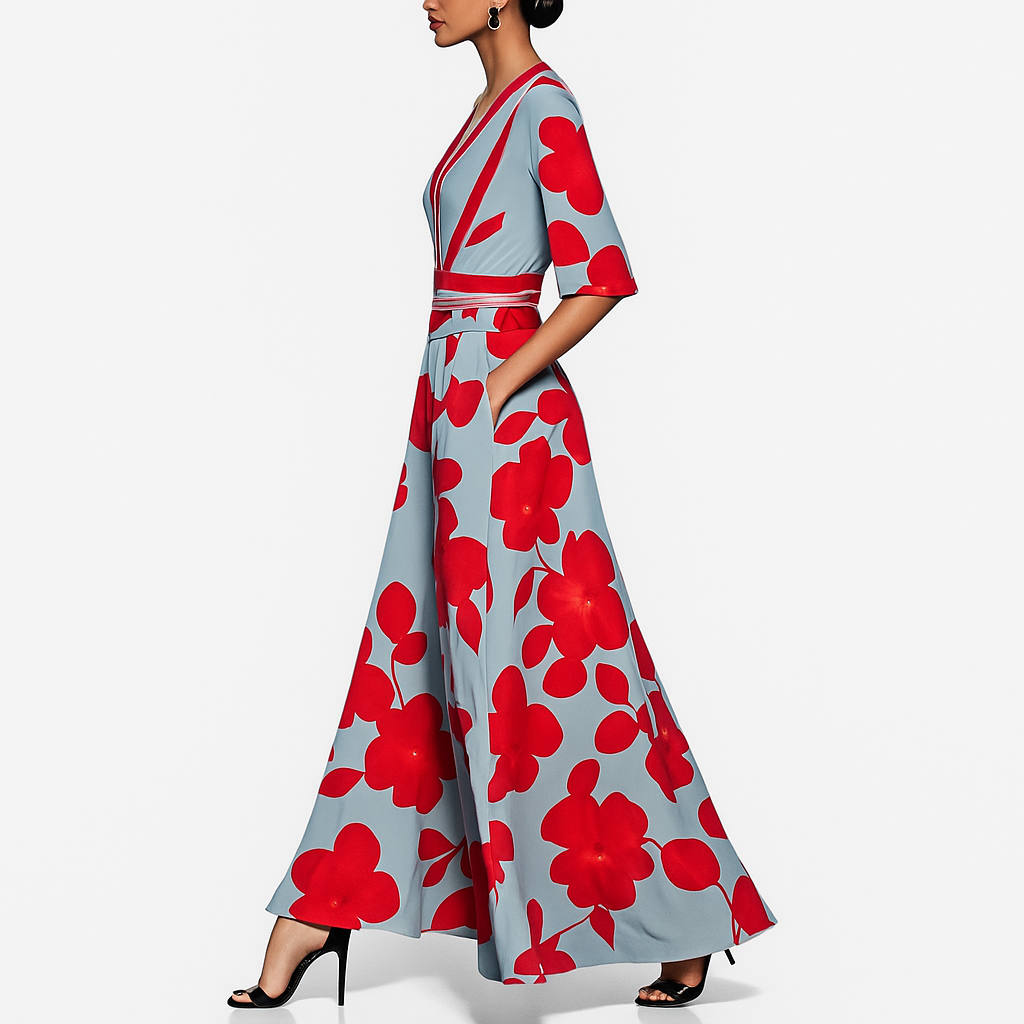 Гордана - Елегантна дълга рокля с V-образно деколте