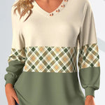 Карето по лентата придава свежест на дизайна, а копчетата на деколтето добавят женствен допир.