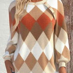 Мека и елегантна плетка в топли нюанси на бежово и ръждиво.