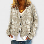 Открийте Stela - Дамско кардиган с цветен принт , където вечните цветни композиции срещат ежедневната елегантност. Тази жилетка съчетава романтична привлекателност с комфорт и е идеална за носене над любимите ви основни дрехи.