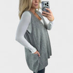 Елегантен и топъл, този жилет обожава нашите клиенти! Този флуиден и пухкав жилет е перфектен за многослойно облекло, с дълга дължина и А-образен силует, който създава ласкава форма. Леката плетена материя осигурява топлина без тежест, докато меланжовите тонове и детайлите от ребриста тъкан добавят щрих на стил.
