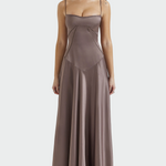 Елегантна и минималистична сатенена рокля, която излъчва вечнаSophistication. С тонки презрамки и дискретни шевове, които подчертават талията, създават женствена и изискана сила. Идеален за вечерни излизания, сватби и висок успех.