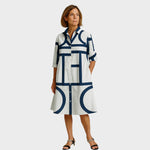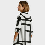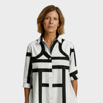 Подчертайте своя стил с тази впечатляваща рокля с геометричен модел. Комбинацията от класическа риза и модерен дизайн прави перфектен избор за жени, които искат да съчетаят елегантност и комфорт. Летящият крой позволява свобода на движението, докато впечатляващият модел добавя нотка на артистичен и градски чар.