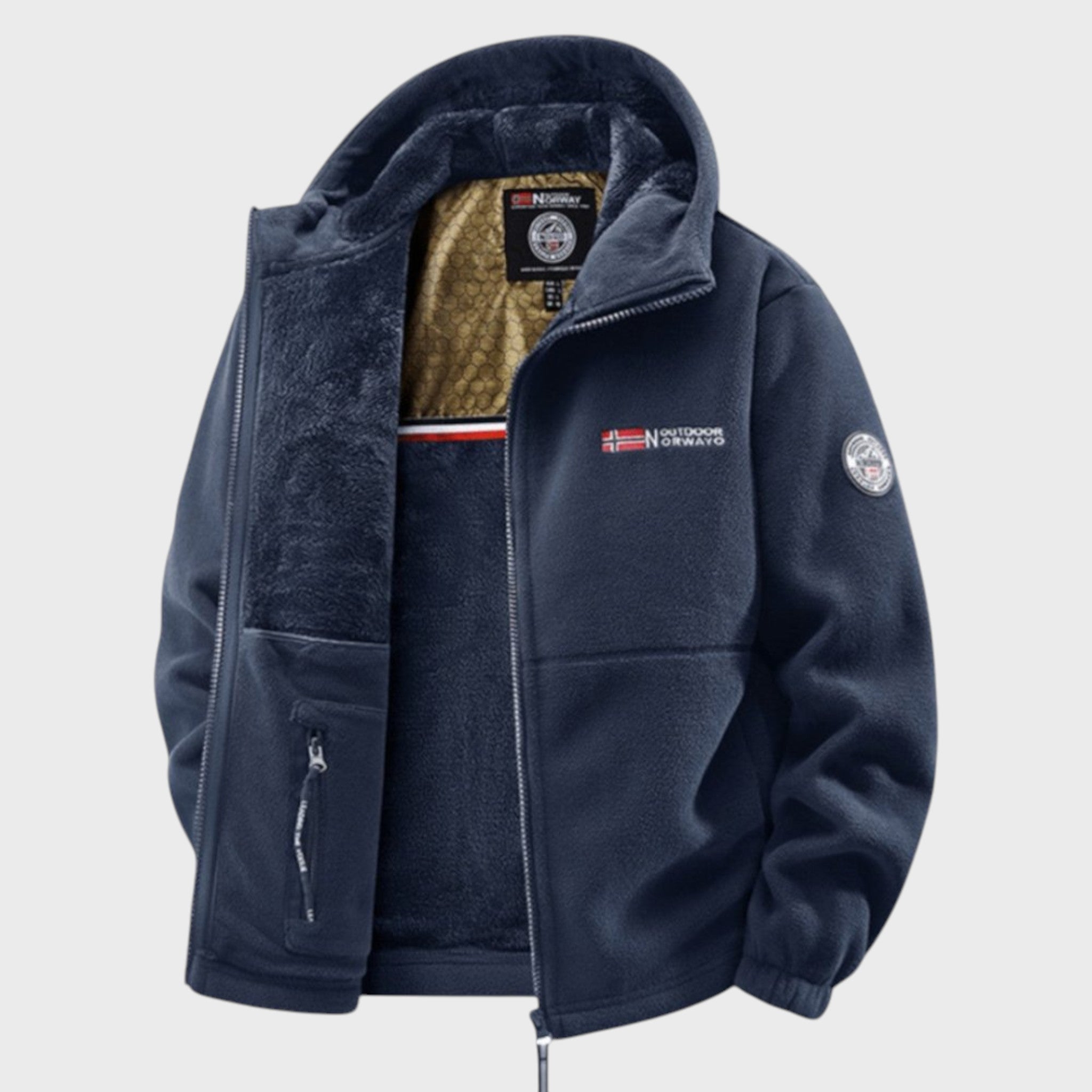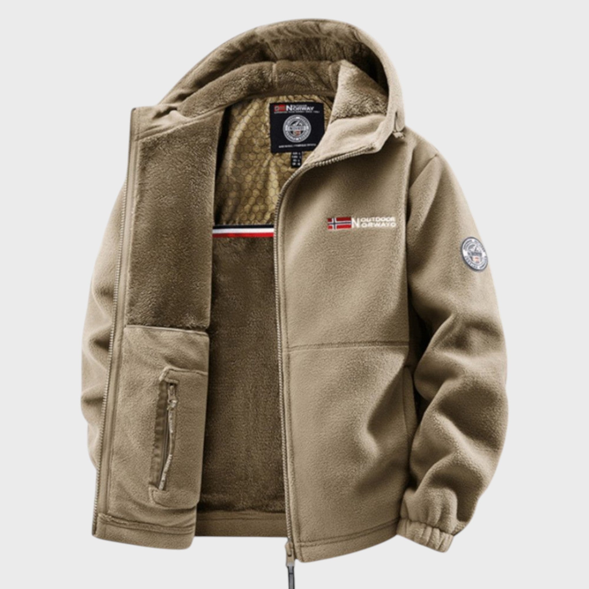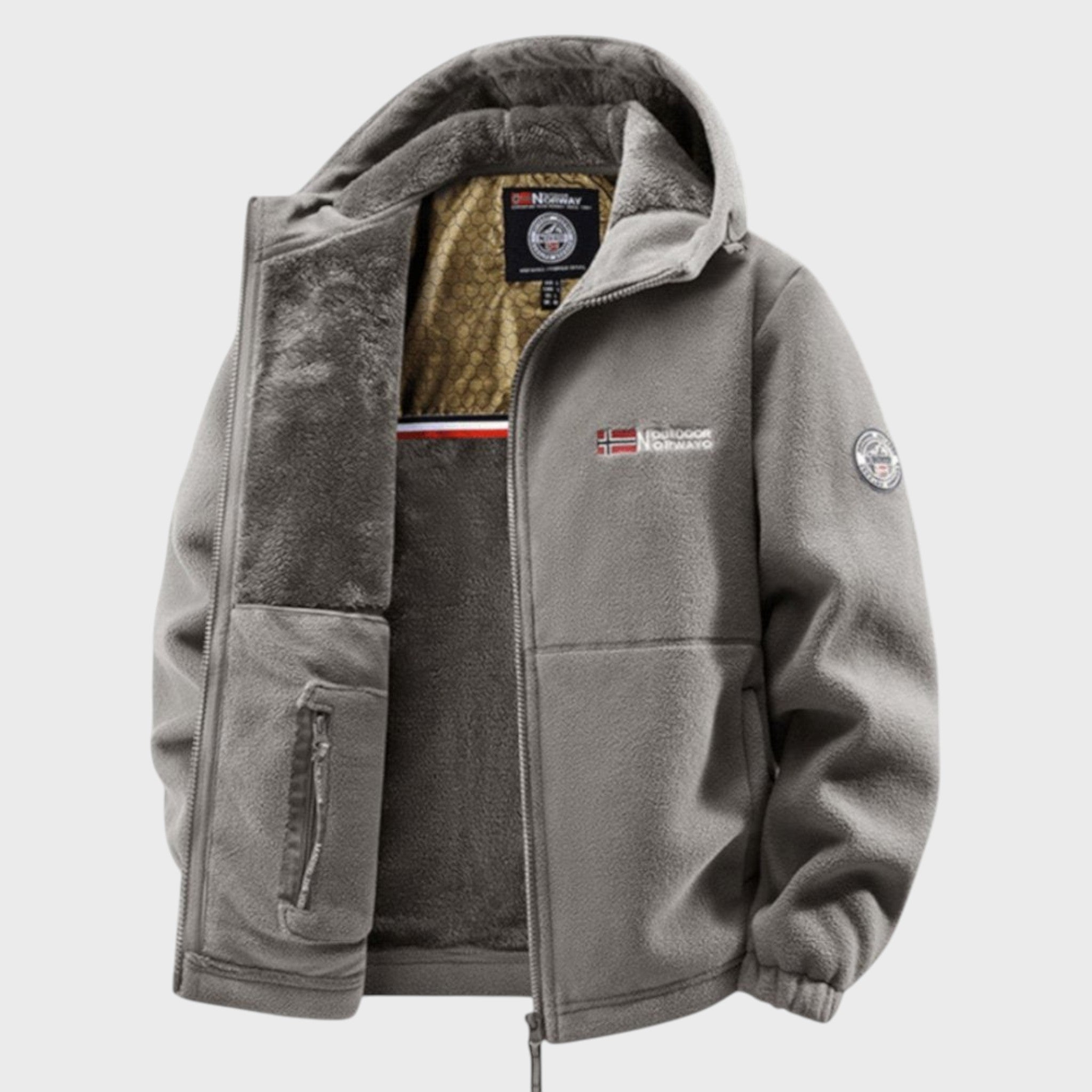 Този мъжки полярен суичър съчетава уютна мекота с надеждна защита срещу променящото се време. Перфектен избор за ежедневни разходки, екскурзии или просто за града, той предлага скандинавски дизайн, който лесно се комбинира с всяко облекло.