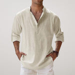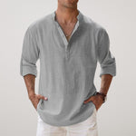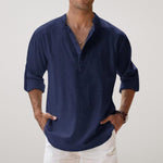Открийте идеалната риза, която съчетава стил, комфорт и простота. Изработена от дишащ памук Георчо с ленен ефект, тази хенли риза ви гарантира небрежен и подреден вид при всякакви обстоятелства. Перфектна за разходки по плажа в слънчеви дни или за релакс през уикенда, тя се адаптира към всичките ви желания.