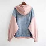Урбан парче: дънков преден и заден панел в комбинация с меки ръкави и капюшон. Oversize кройка, цип, регулируеми връзки и джобове с клапа предлагат вид на яке и удобство на hoodie в един слой. Идеално за предходни периоди и многослойно облекло — от града до уикенда.