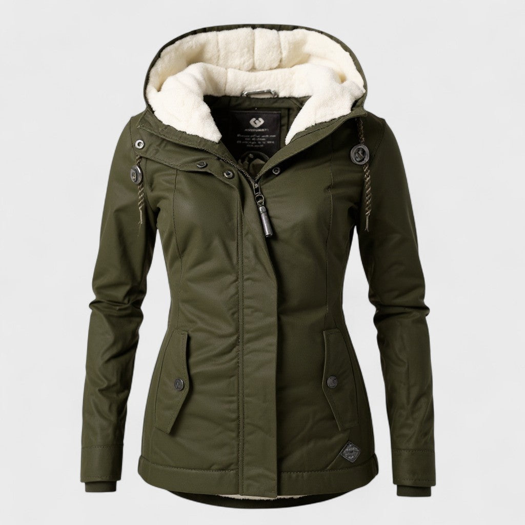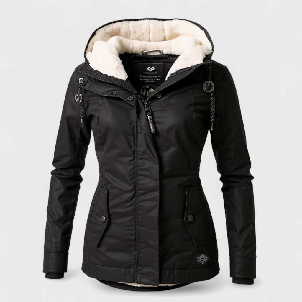 Открийте идеалната комбинация от стил, удобство и практичност! Това зимно яке ще ви предпази дори и в най-студените дни. Елегантната кройка подчертава фигурата ви, а меката вътрешна подплата от изкуствен пух осигурява максимална топлина и комфорт.