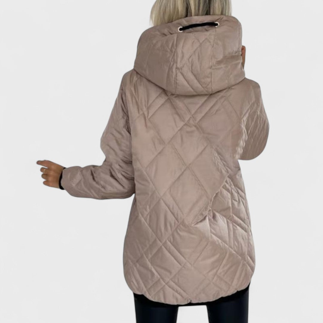 Мария - Стилен пухкав зимен яке с качулка и златен цип