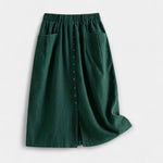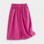 Естествена текстура и ненатрапчив стил в пола, който комбинира ретро чар с ежедневна практичност. Високата талия обгръща женската сила, докато предните джобове осигуряват комфорт и функционалност.