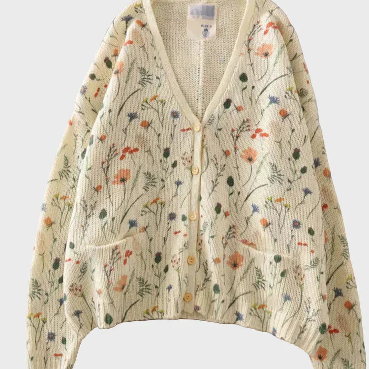 Елегантен Плетен Жилетка с Цветя