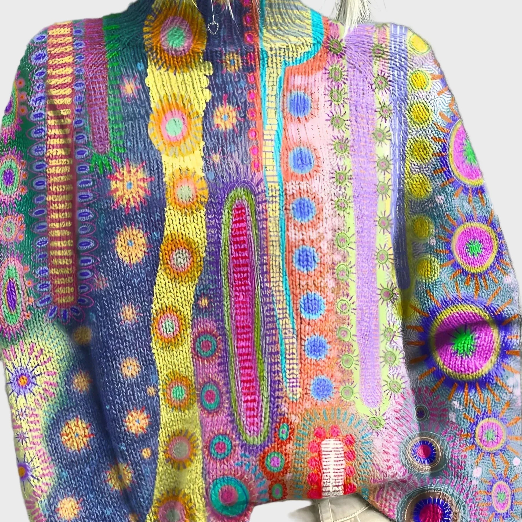 Елегантен Плетен Жилетка с Цветен Узор