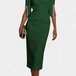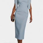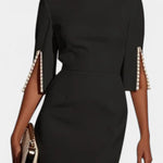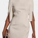 Весна Миди Рокля с Пърлени Детайли и Кръгло Деколте