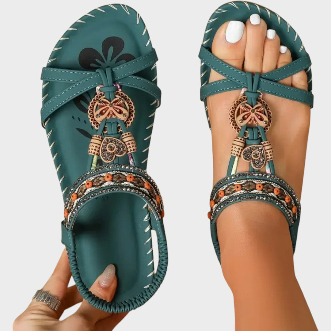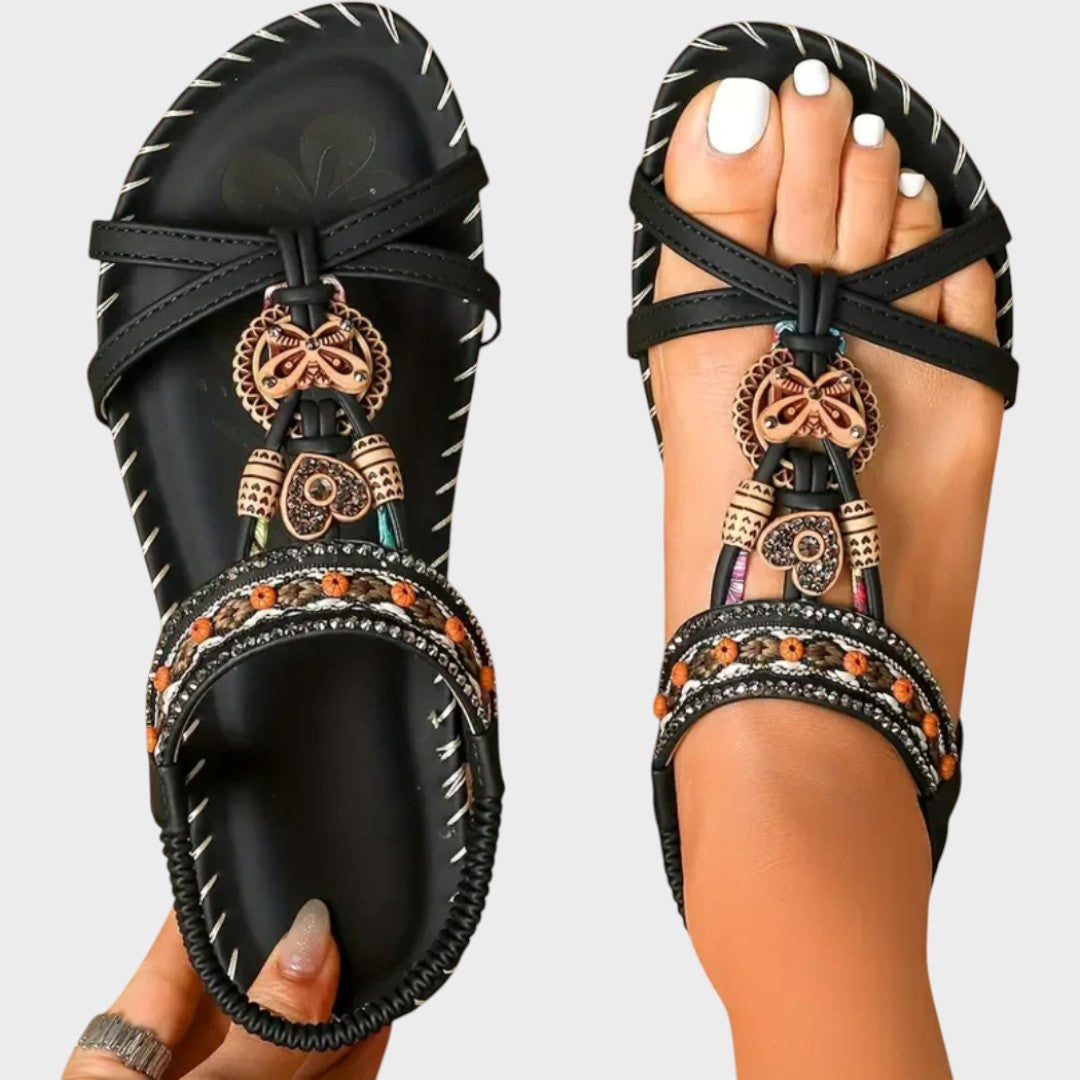 Тези ортопедични сандали перфектно съчетават комфорт и стил. Те са проектирани с ергономична подметка, която осигурява опора на стъпалото и улеснява целодневното ходене. Декоративните детайли добавят щрих на изтънченост, докато гъвкавата изработка позволява естествено движение. Идеални са за ежедневна употреба, както и за оценени поводи, когато искате да изглеждате модерно, а в това време да се наслаждавате на комфорта.