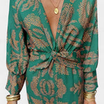 - Чвор в талията, който дефинира фигурата със стил и деликатност