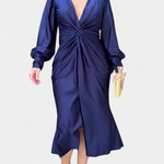 Временна силуета, която комбинира простота и изтъкнатост. Лена се отличава с V-образно деколте, което удължава и ласкае, високата талия, която подчертава фигурата, и дългите ръкави, които придават баланс и сдържаност. Нейният монохромен дизайн прави универсален елемент за есенния сезон, лесно приспособим към различни поводи.