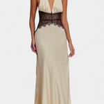 Дизайн, който излъчва изискана сексуалност и сложна елегантност. Мартина комбинира дълбок халтер изрез с деликатна чипкова лента на талията, създавайки перфектен контраст между субтилното и смелото. Течната материя обгръща тялото с грация, докато напълно откриете гърба добавят неочакван и смел обрат.