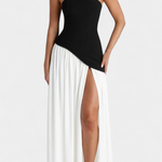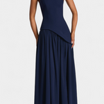 Софистирана и пълна с движение, роклята Райна съчетава структуриран топ с ефирната лекота на шифона. Нейният off shoulder деколте подчертава женствеността с изискано докосване, докато дългата пола с боков разрез внася динамика и съблазнителност. Проектирана да се откроява по елегантни поводи, това е парче, което естествено балансира модерността и вечността.