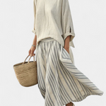 Цялостен комплект Daisy с Oversize тениска и миди пола с райета от лен и бамбук за елегантен и удобен стил