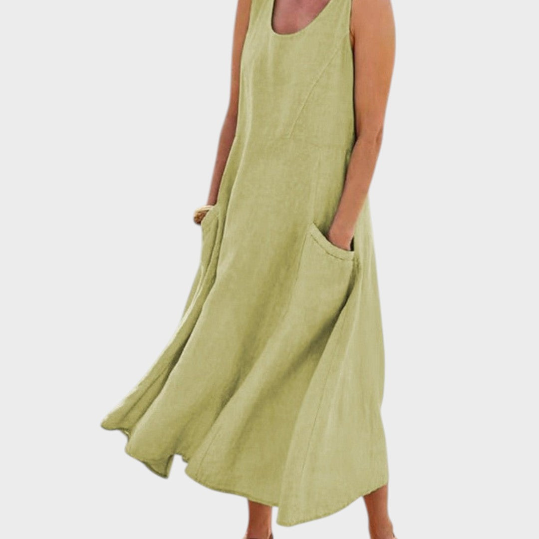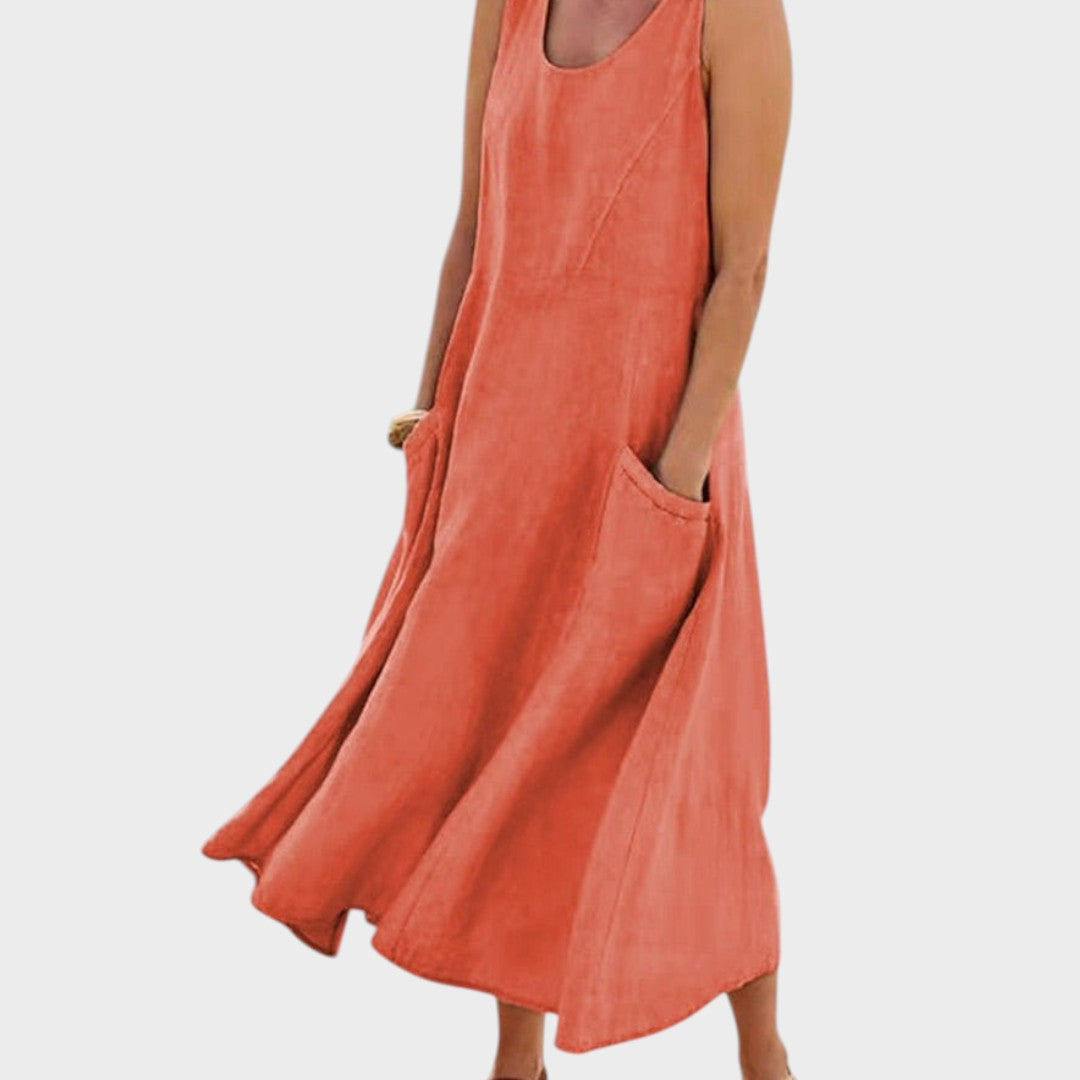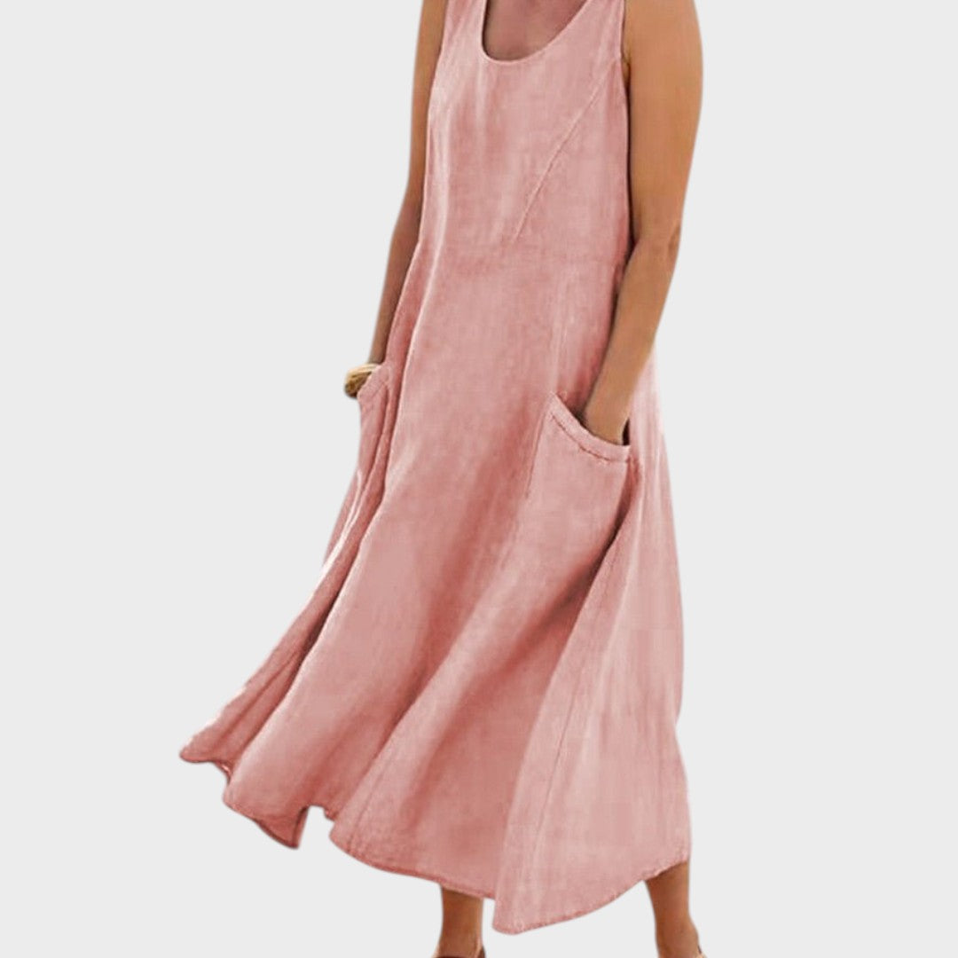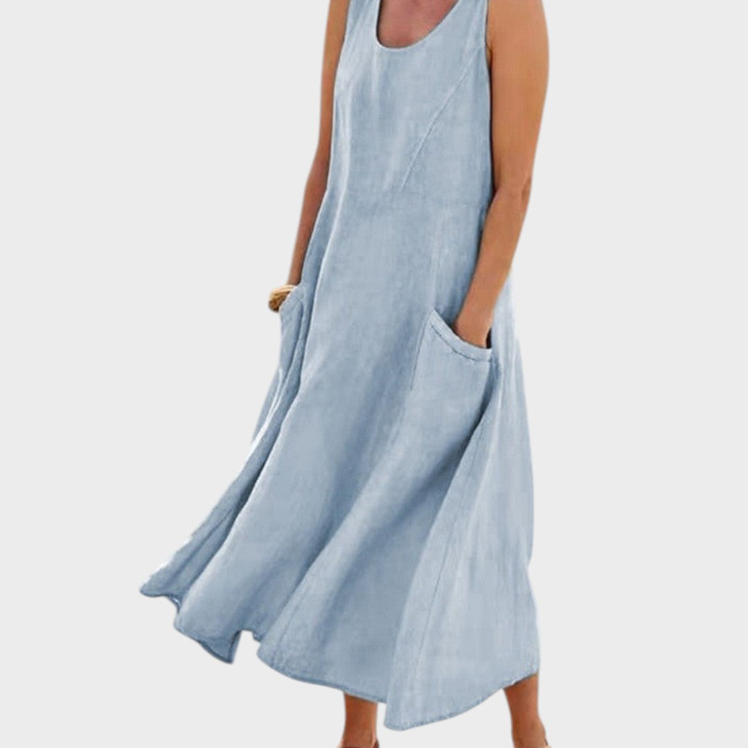 Роклята Паола е създадена за топлите дни и моментите, когато искате да изглеждате женствено, а да се чувствате леко и отпуснато. Проветливите осигуряват крой свобода на движението и приятно усещане през целия ден. Идеален е за разходки, неформални срещи или пътувания.