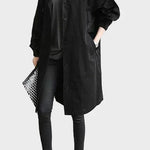 Този тренчкот съчетава стил и удобство, създавайки модерен и елегантен външен вид. С дълга линия и свободен силует, той е идеален за носене върху различни облекла, осигуряващ комфорт и защита през прохладните дни.