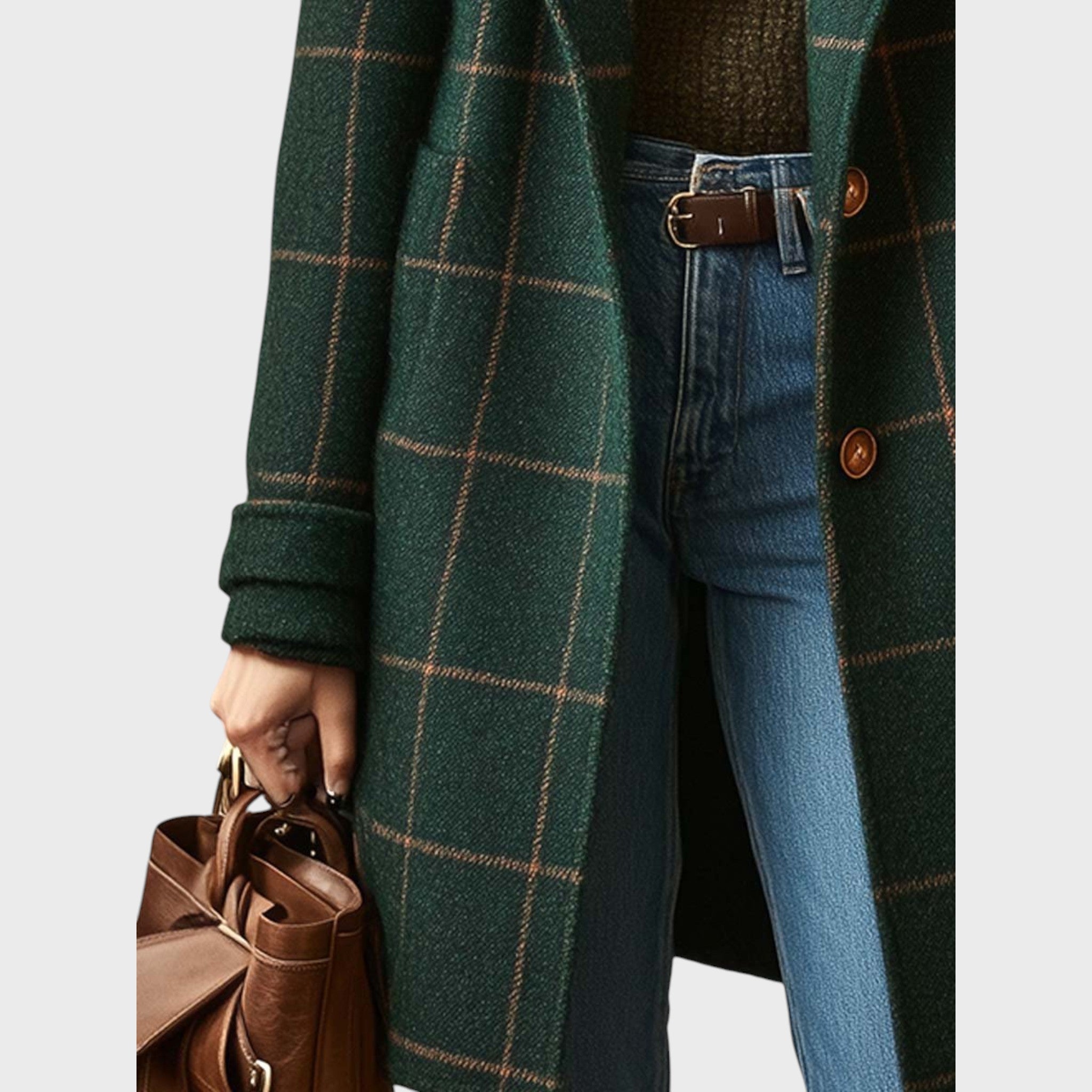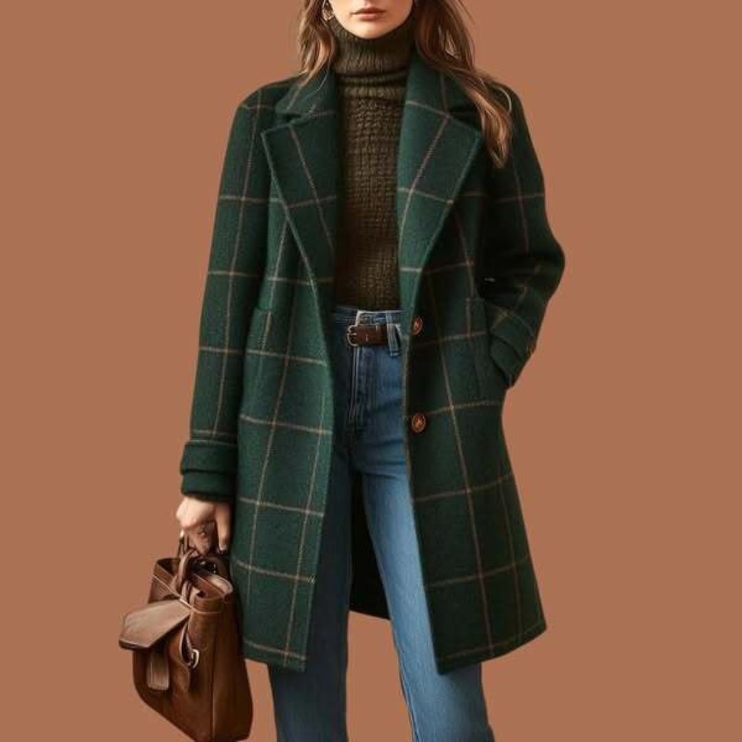 Изискан кариран дизайн Вечен десен, който никога не излиза от мода. Структурираните ревери и елегантната кройка създават ласкав силует, който изглежда луксозно.