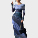 Универсален стил: Дългият силует и класическата кройка правят роклята подходяща за всякакви поводи.